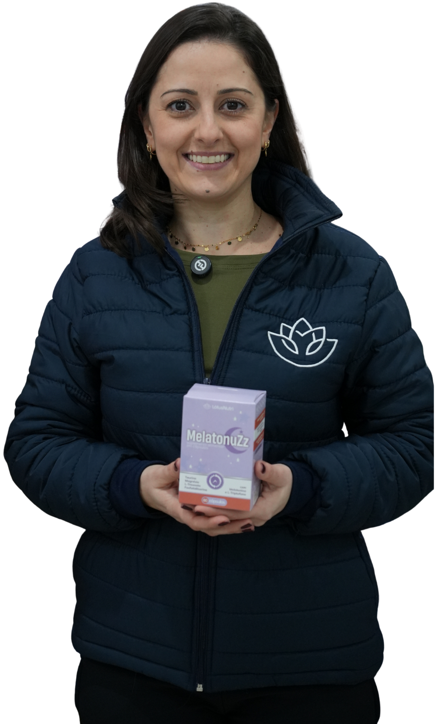 "Sempre tive dificuldade para desligar a mente à noite. Com o MelatonuZz, consigo relaxar, dormir rápido e, o melhor, acordo descansada, pronta para o meu dia. Já faz parte da minha rotina e não abro mão."